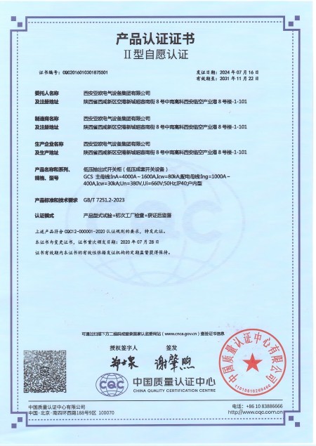 - 關(guān)于我們 - 資質(zhì)榮譽(yù) - 低壓抽出式開關(guān)柜(GCS)資質(zhì)