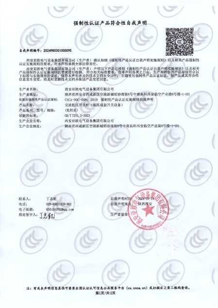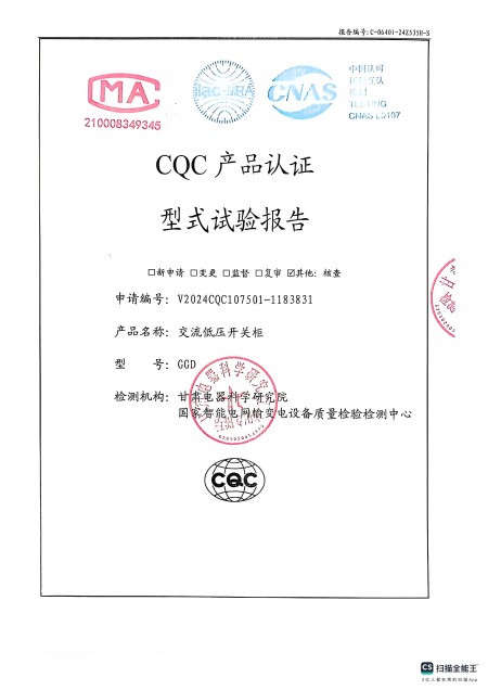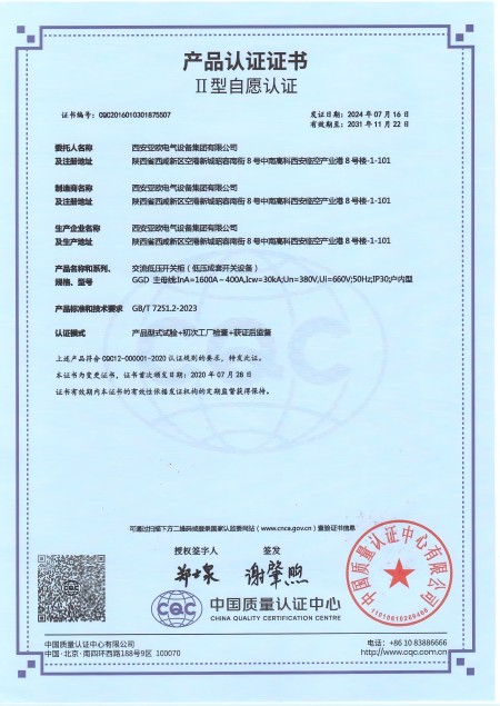 - 關于我們 - 資質榮譽 - 交流低壓開關柜(GGD)資質